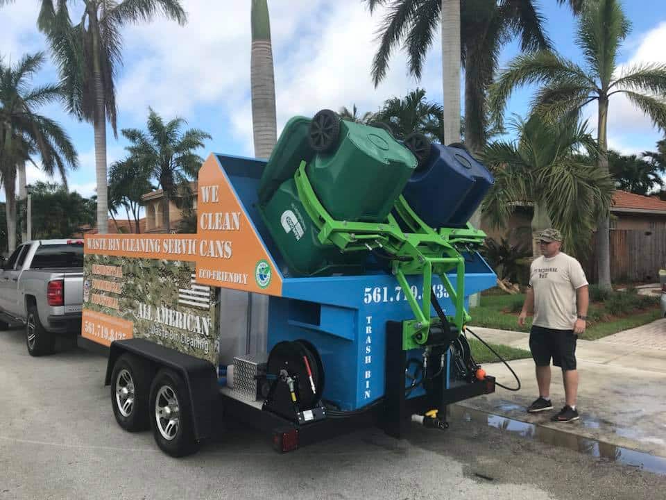 After the cleaning process, the hydraulic lift returns the container to the curbside where our technician will sanitize the inside and outside of your bin(s) to ensure they are fresh, clean and ready to return to your property.